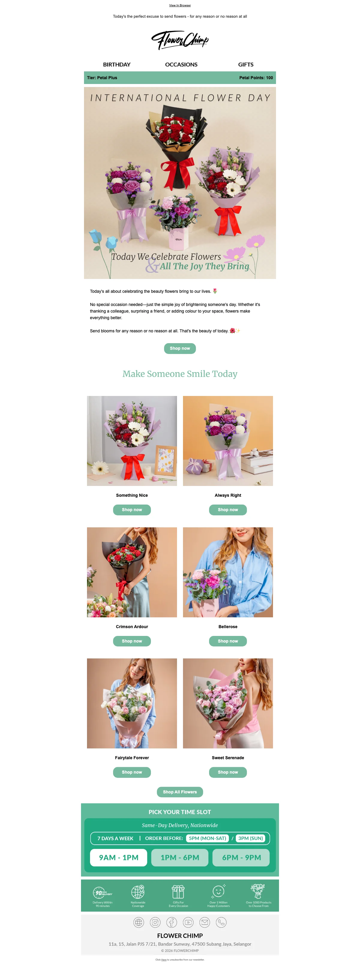 | IA10RM | Purchase now to get RM10 off sitewide using this Flower Chimp voucher code |