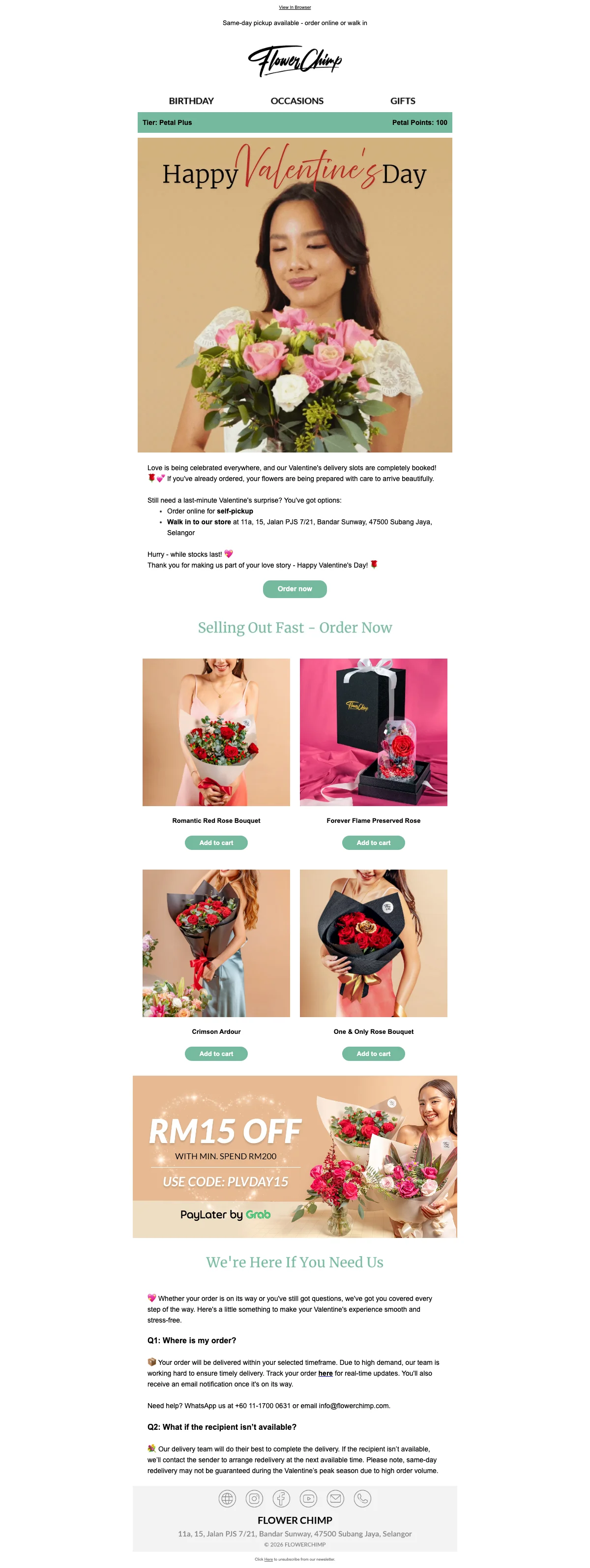 Flower Chimp Valentine's RM25 off collection pre-order vday blooms