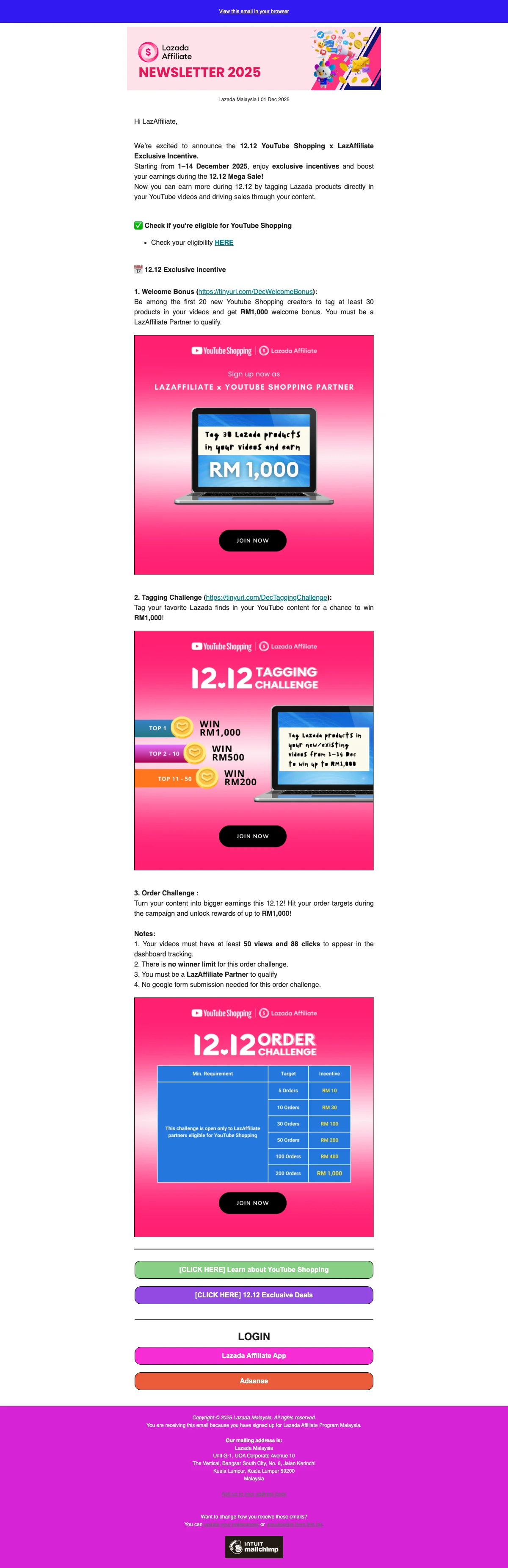 🚀 12.12 LazAffiliate x YouTube Shopping Incentive!