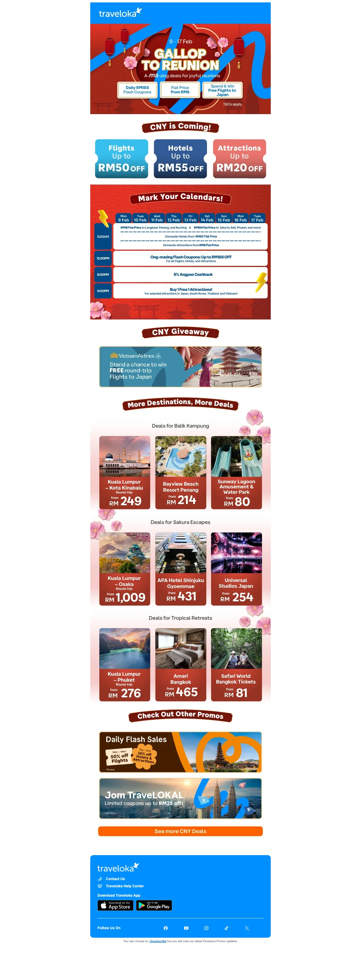 We check all the newsletters from Traveloka for you to find the best deals. Have a look at their latest newsletters.